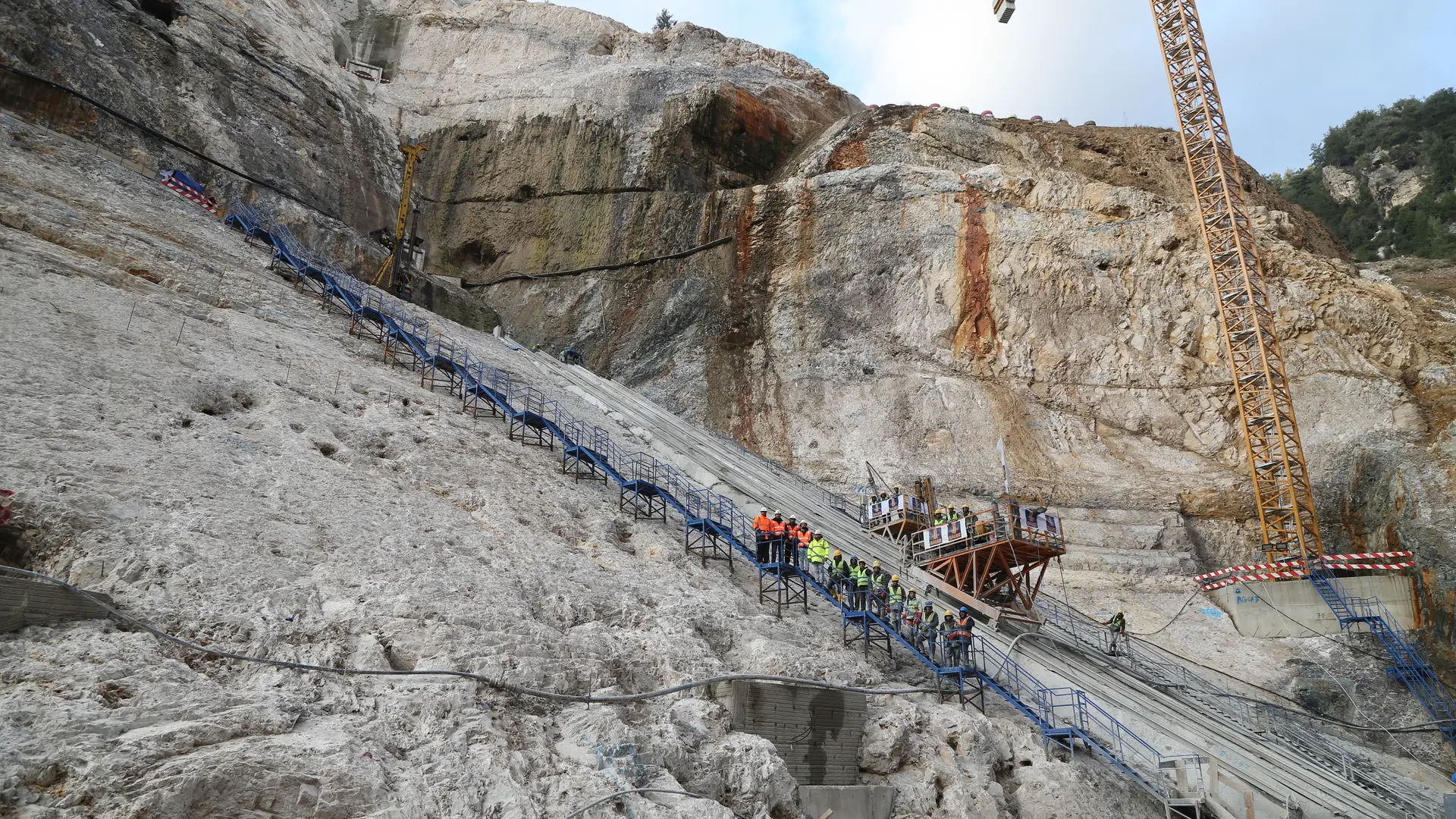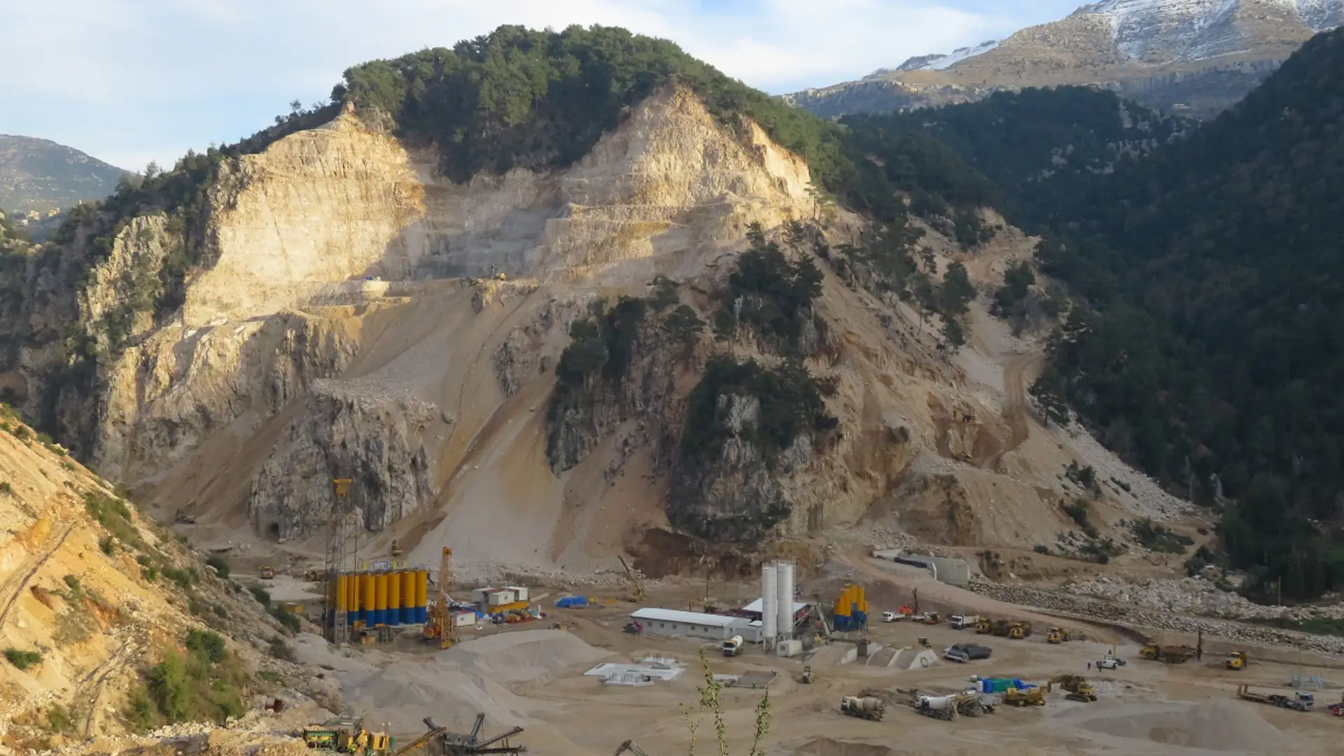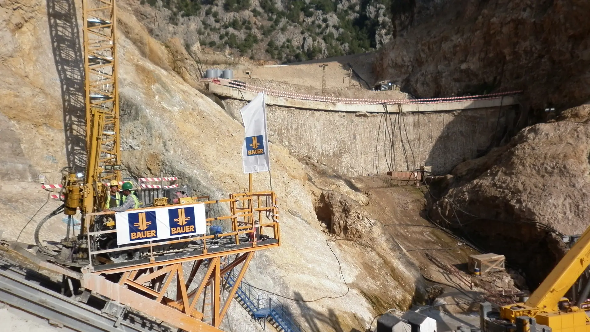 Der Jannah-Damm ist nicht nur eine eindrucksvolle Bogengewichtsmauer, sondern auch ein lebenswichtiger Speicher für 38 Millionen m³ Wasser zur Versorgung von Byblos, Beirut und seinen Vororten. Bauer Spezialtiefbau hat hier Herausragendes geleistet: Mit insgesamt 9.500 m² Tonbetondichtwänden, die bis zu 50 m tief reichen, und parallel verlaufenden Schlitzwänden, die durch ein bogenförmiges Schott miteinander verbunden sind, gewährleisten sie nicht nur die vertikale Untergrundabdichtung, sondern auch die Stabilität bis zu einer Tiefe von 36 m. Zusätzlich werden Injektionsschleier entlang des Dammfundaments und in den Widerlagern eingesetzt, um das Sickerwasser zu minimieren, während spezielle Schienen mit mobilen Plattformen an steilen Hängen den hochwertigen Bau des Dichtschleiers vor dem eigentlichen RCC-Dammbau ermöglichen.