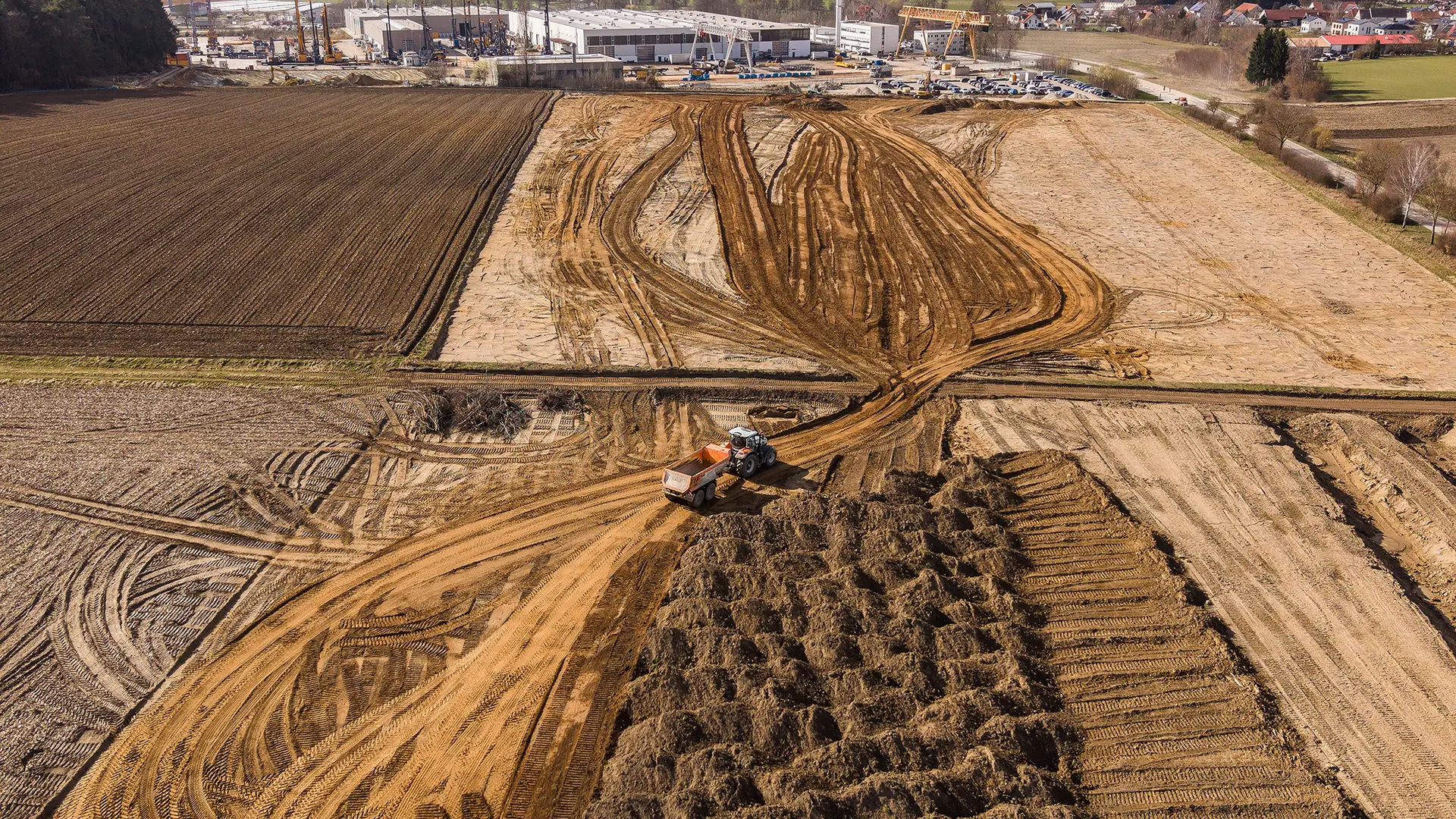 Mit den erforderlichen Erdarbeiten wurde der Geschäftsbereich Bauer Umwelt der BAUER Resources GmbH beauftragt. Dazu gehört der Abtrag der an das bestehende Werksgelände angrenzenden Ackerflächen südlich der Finish-Halle, auf denen künftig das neue Freilager entsteht, sowie der Flächen östlich des Geländes, auf denen der Hallenneubau geplant ist.