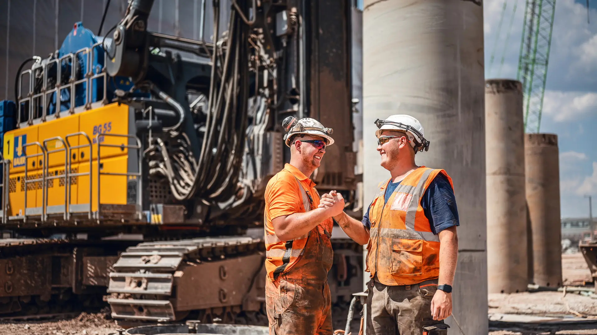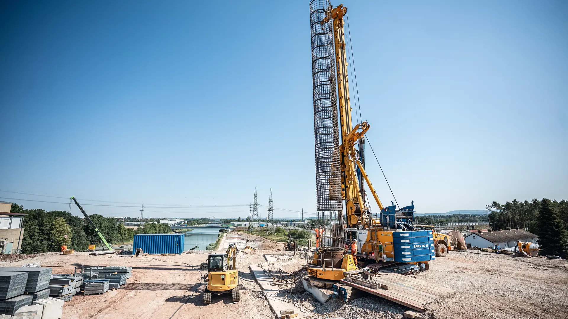 Was hier im Süden Erlangens entsteht, ist eines der bedeutendsten Infrastrukturprojekte im deutschen Binnenwasserbau: der Ersatzneubau der Schleuse Kriegenbrunn. 330 m Länge, fast 30 m Tiefe und 8.000 to Stahlrohrsteifen – die Hauptbaugrube, die selbst im Spezialtiefbau neue Maßstäbe setzt. Mit Drehbohrgeräten vom Typ BG 55, BG 45 und BG 39 entstehen hier Pfähle mit bis zu 2 m Durchmesser und 37 m Länge – jeder einzelne präzise gesetzt, um die Stabilität der Hauptbaugrube zu sichern. Das Ergebnis: Ein Fundament, das den Schiffsverkehr auf dem Main-Donau-Kanal für kommende Generationen sichert. Mit Präzision, digitaler Planung und echter Teamarbeit machen unsere Experten gemeinsam mit ZÜBLIN möglich, was in diesen Dimensionen kaum vorstellbar ist. Ein echtes Jahrhundertprojekt!