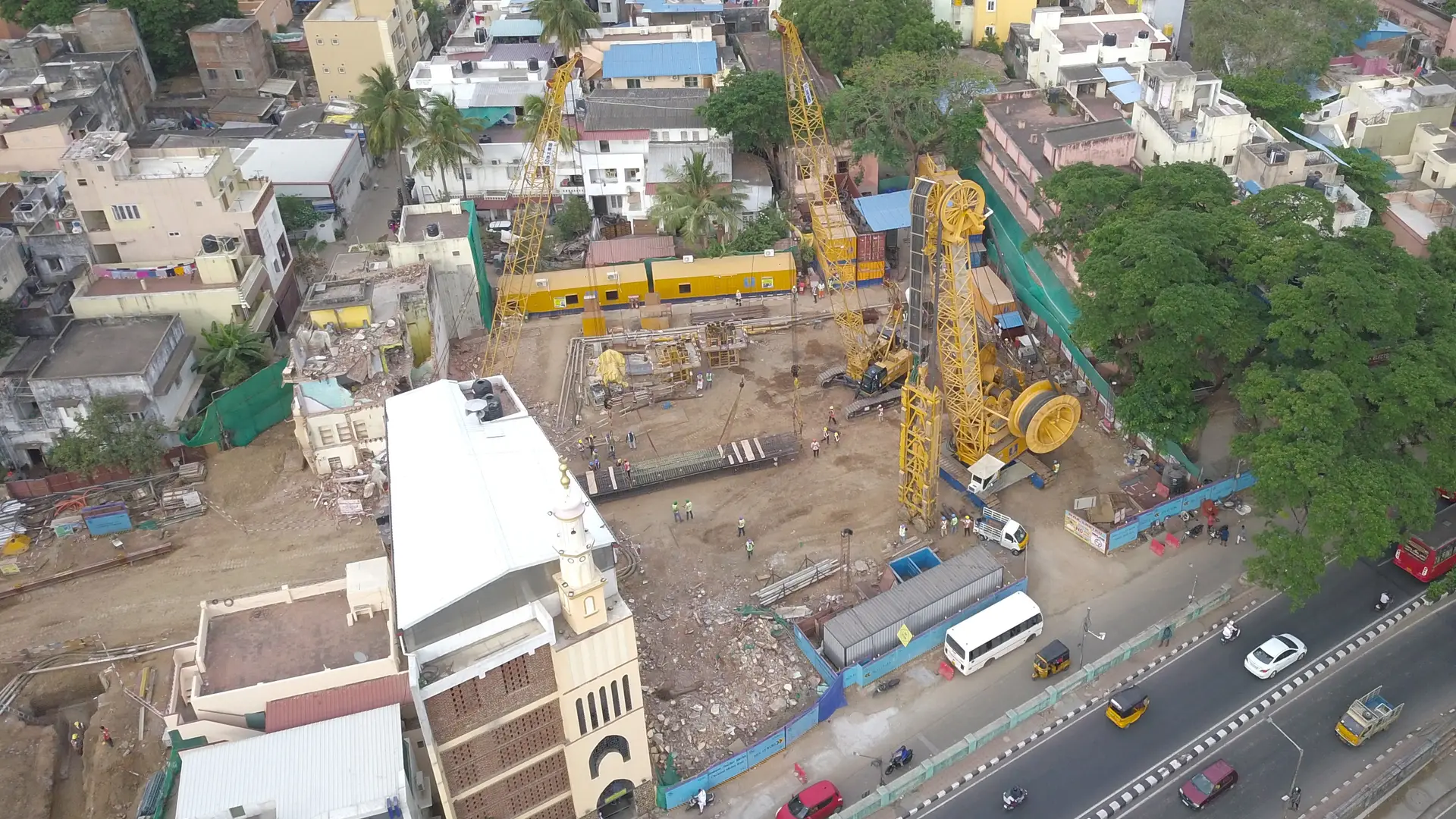 Bauer Engineering India successfully completed the construction of the diaphragm wall for the Chennai Metro three months ahead of the original schedule. The scope of work encompassed the construction of 15,144 square meters of diaphragm wall, with thicknesses of 0.8 m and 1.2 m, in challenging sandstone geology. The trenching in rock reached a depth of 10 m. This complex operation required meticulous planning, including strategic traffic diversion and the preparation of islands for smooth traffic management, ensuring minimal disruption during construction.