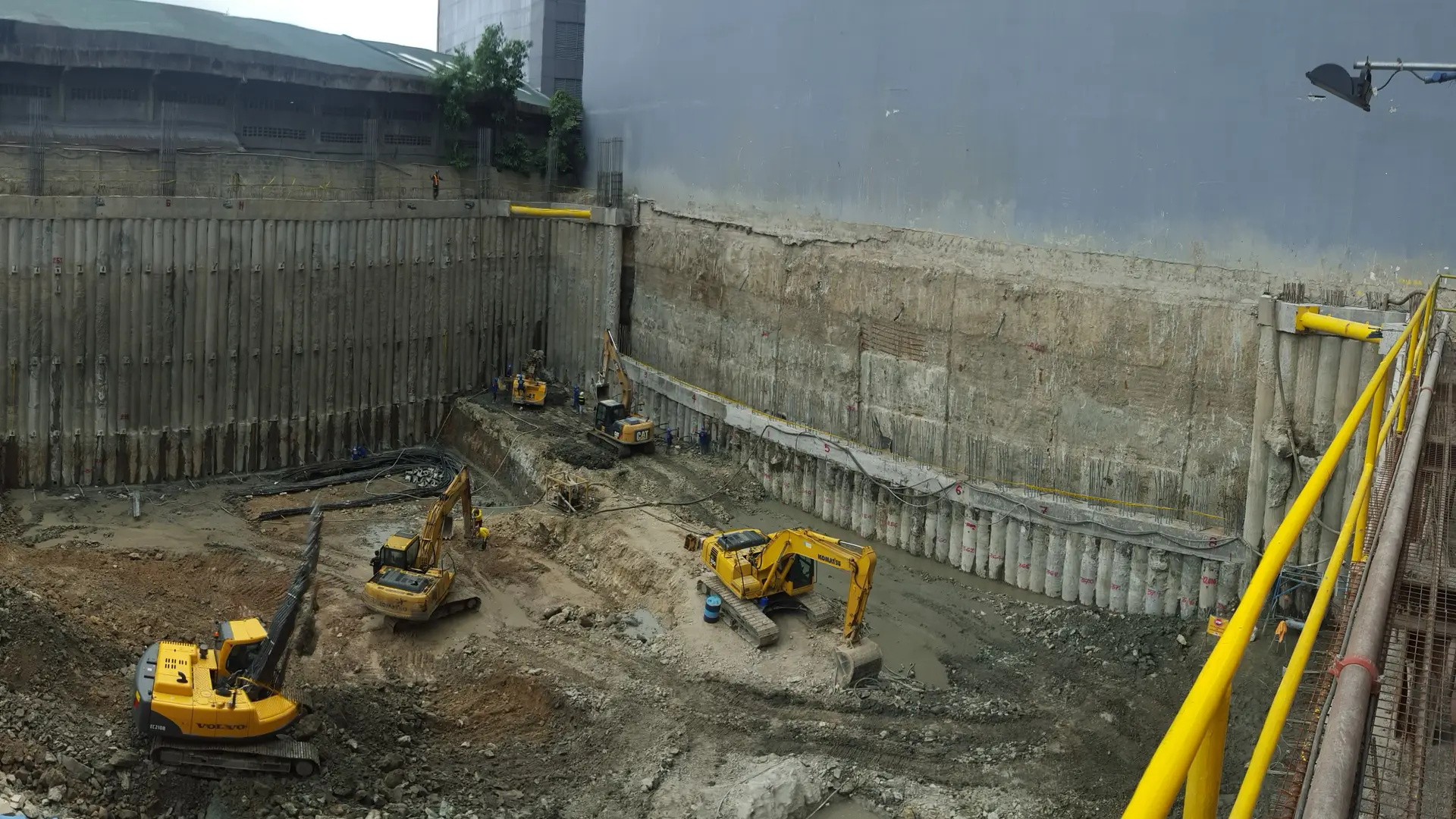 Eastwood Global Plaza is a modern 49-storey luxurious condominium built in accordance with the Leadership in Energy and Environmental Design (LEED) requirements, situated alongside towering buildings. Bauer Philippines carried out the design and construction of shoring works and 280 m capping beam for the 4-storey basement excavation pit. A total of 386 piles with a diameter of 880 mm up to a length of 24 m were installed and the resulting secant pile wall was back anchored with about 836 ground anchors with up to 25 strands each. Double wall casings were used to ensure that pile shaft will have minimal bulking and Drilling Inclination System (DIS) was used for monitoring the verticality of casings. With the performance of BG 40 and BG 30 drilling rigs, our experts completed the project 21 days ahead of its contractual schedule.