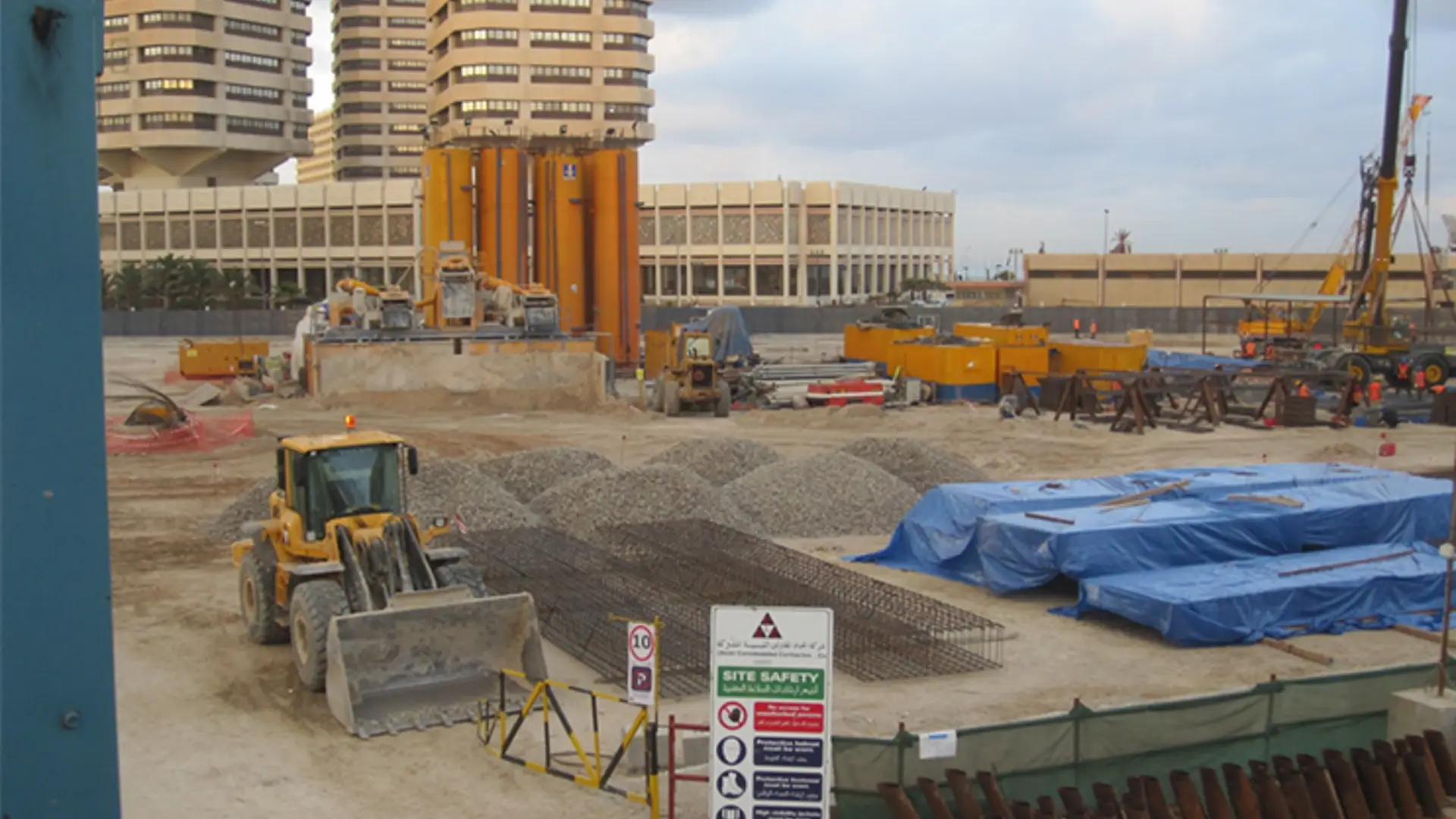Bauer Egypt undertook a key project in Tripoli's coastal Souk al Talat area, known for its luxury hotels. The development includes two towers for hotel and office use, featuring a four-level basement with car parking and water tanks. Our expert's work involved constructing 12,000 m² of diaphragm walls at 22 m depth, installing 510 piles (1,000 mm diameter) and 554 piles (1,200 mm diameter), both 45 m long, with compression loads of 472 and 679 tons respectively, along with 1,050 ground anchors to secure the structure.