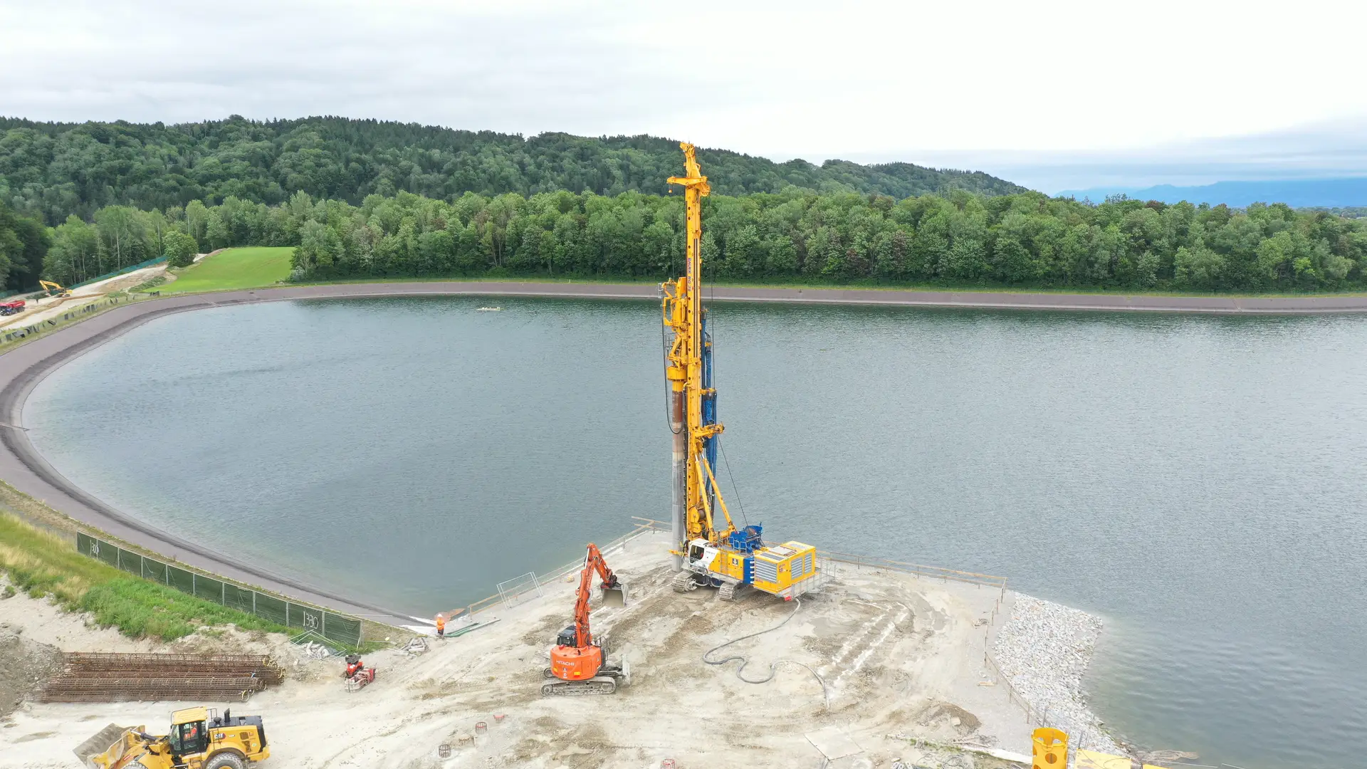 In Feldolling, south of Munich, a flood control reservoir was constructed for the Mangfall River. For this project, the experts from Bauer Spezialtiefbau executed a 21,000 m² cut-off wall using the Mixed-in-Place method. The scope of works also encompassed the construction of multiple dikes with different lengths along with additional structures for the operation of the retaining basin. Various methods were used such as the Mixed-in-Place method and jet grouting technique in order to install the required cut-off walls. The particular challenges with this project: working near important supply lines and the varied geological structure of the soil.