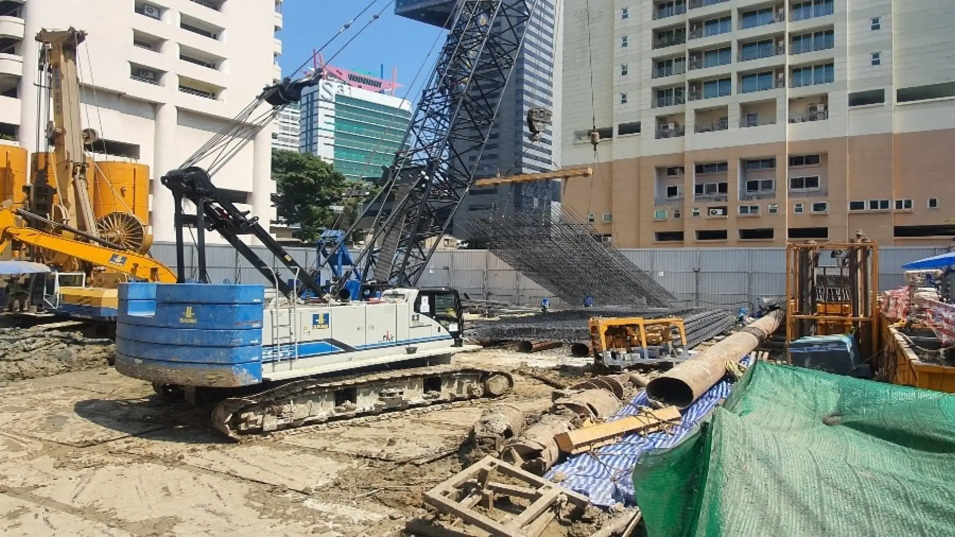 For the G.M. Palace Sukhumvit 20 Project in Bangkok, Thai Bauer carried out significant foundation work. Our specialists executed the installation of 122 bored piles with diameters varying between 350 mm and 1,000 mm and depths reaching from 20 m to 58 m. Additionally, they completed 2,838 m² of diaphragm walls and 10 barrette piles. This comprehensive foundation work laid a robust base for the G.M. Palace, ensuring the project’s stability and success.