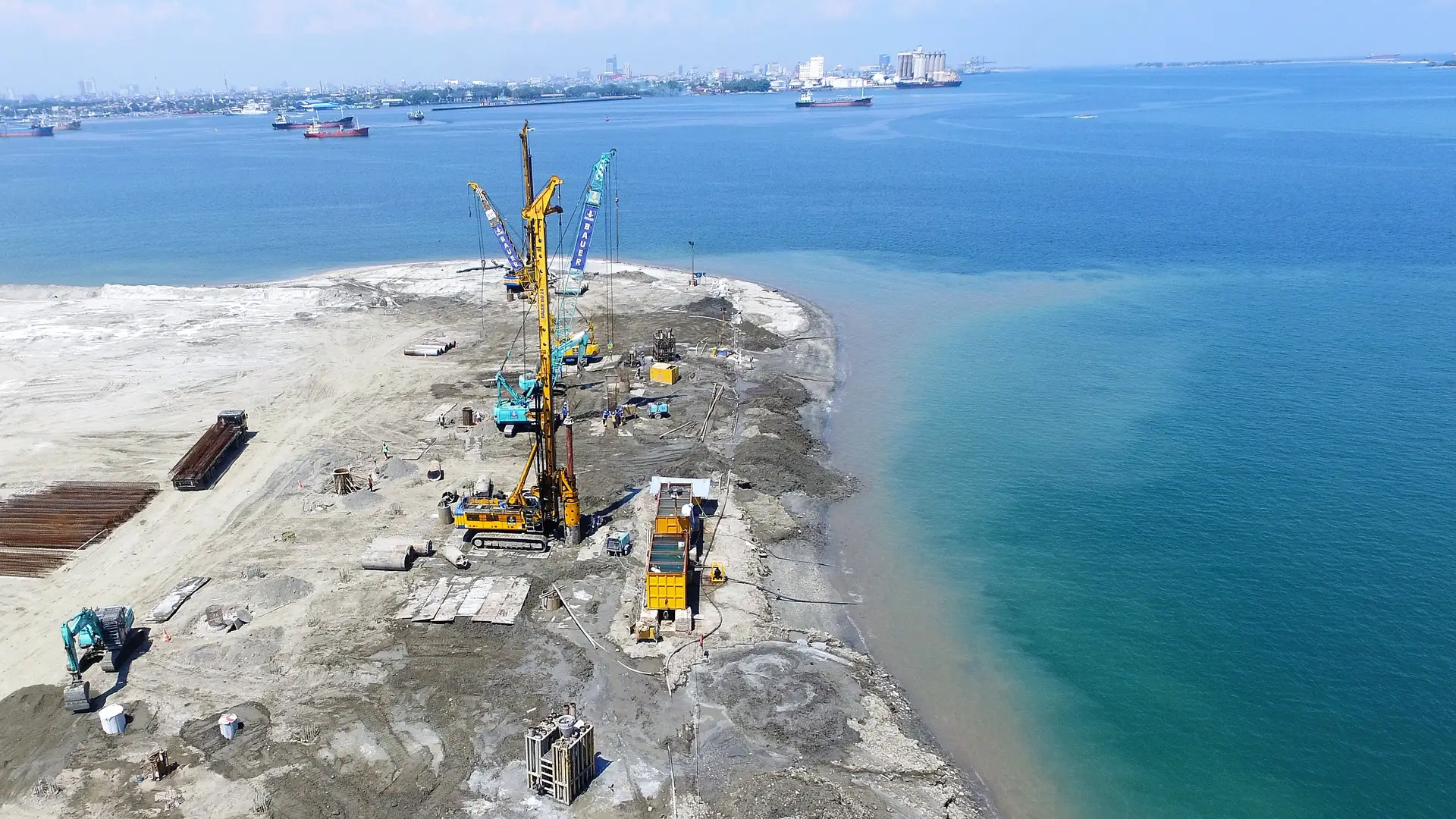 The city of Makassar is set to become a central city for eastern Indonesia. The existing port therefore needed to be expanded to support logistics traffic. To realize this project, Pelindo IV, the Indonesian port authority, planned the construction of a new port on a newly reclaimed island about 2 km off the coast of Makassar. This port has a total depth of 16 m to handle large cargo ships, making it the largest in eastern Indonesia. For the so-called 1A phase, our experts from Bauer Indonesia were commissioned for the first 500 meters. The new island was backfilled with sand and the piling works consist of 880 mm and 1180 mm diameter bored piles and 1180 mm diameter secant piles for a harbor quay wall, with an average drilling length of 28 m from ground level. Double-walled casing was used for this new island project.