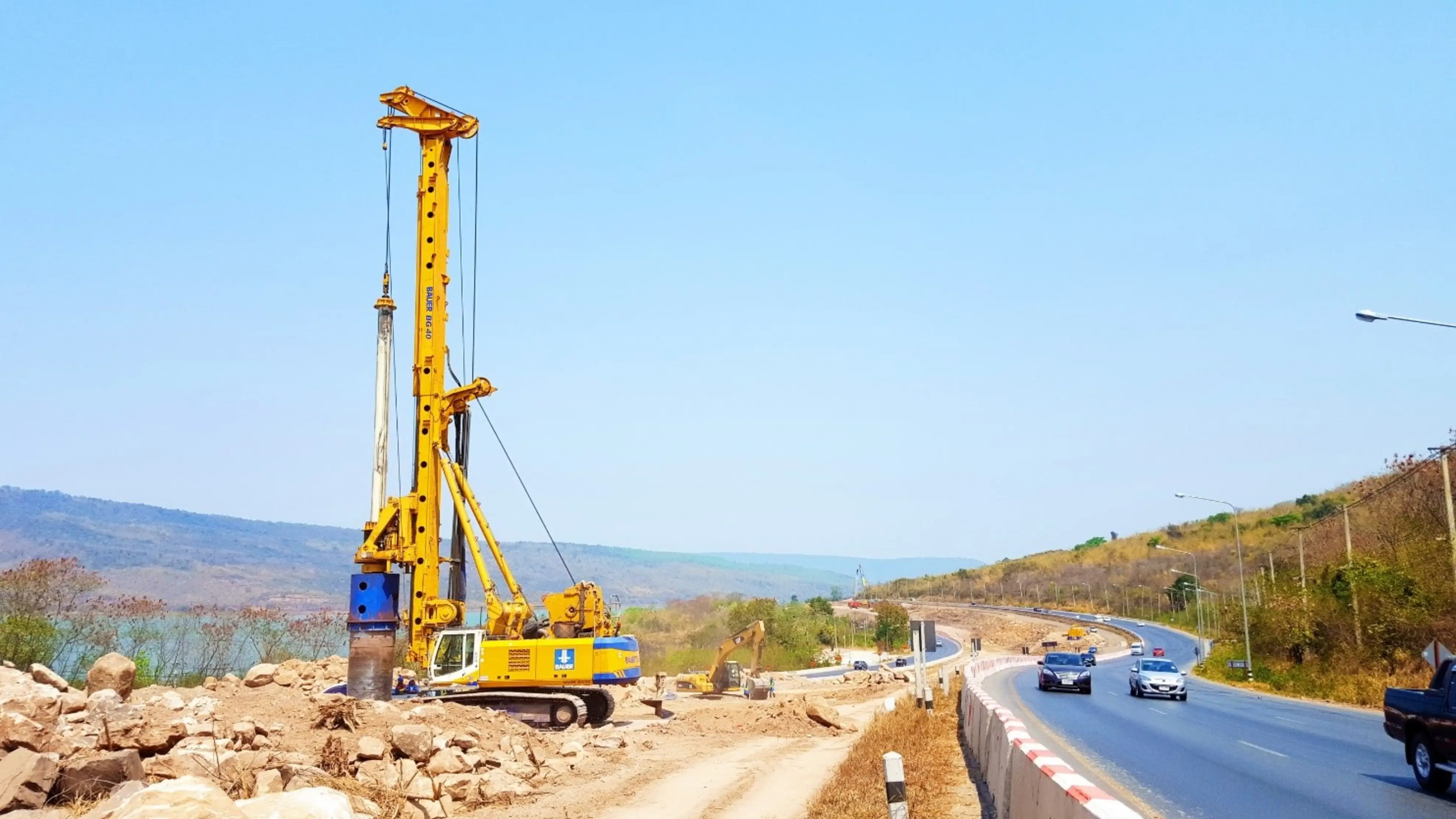 For the Motorway Route No.6 – Section 29 & 30 Project, Thai Bauer was responsible for necessary foundation work. The project involved extensive pile installation. The scope included 12 bored piles with a diameter of 1,200 mm, extending 26 m into soil and 6 m in rock, as well as 216 bored piles with a diameter of 1,500 mm, ranging from 13 to 21 m in soil and 6 to 9 m in rock. Additionally, 148 bored piles with a diameter of 1,800 mm were installed, reaching depths of 13 to 20 m in soil and 11 m in rock. Our specialists successfully completed the works in 11 months.