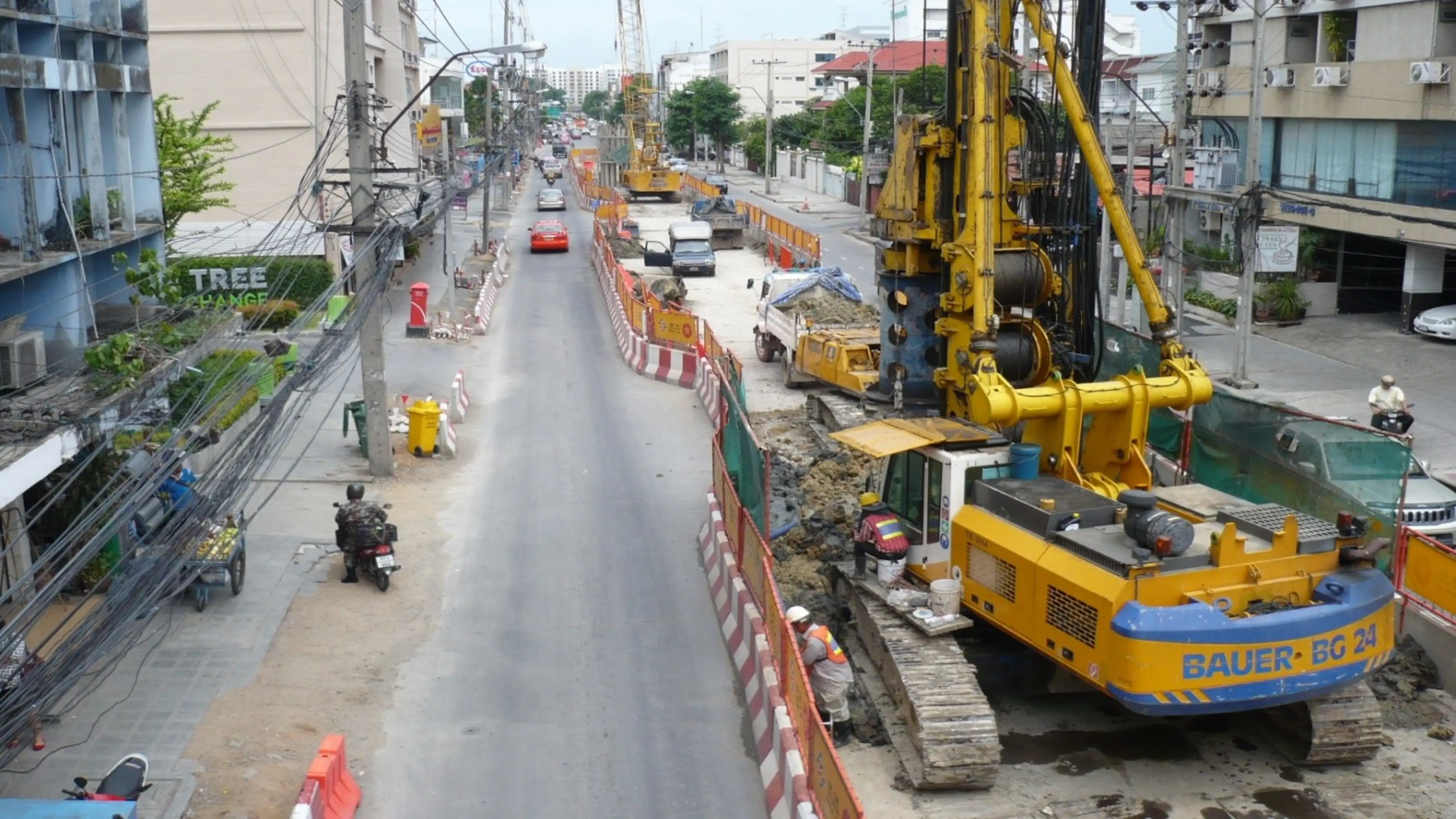 Thai Bauer undertook extensive foundation work for the MRT Blue Line Contract 3 Project, encompassing a diverse range of pile installations. The project required the installation of 60 bored piles with a diameter of 1,000 mm and a depth of 55 m, 196 bored piles of 1,200 mm diameter, 128 piles of 1,500 mm diameter, and 108 piles of 1,800 mm diameter, each extending to 55 m deep. Additionally, our experts installed 16 bored piles with a diameter of 2,000 mm and 2 piles of 1,500 mm diameter in the river. The project's scope also included 160 barrette piles measuring 800 x 2,700 mm and 55 m deep. This comprehensive foundation work was essential in supporting the MRT Blue Line's infrastructure, ensuring both the stability and longevity of Bangkok's expanding rapid transit network.