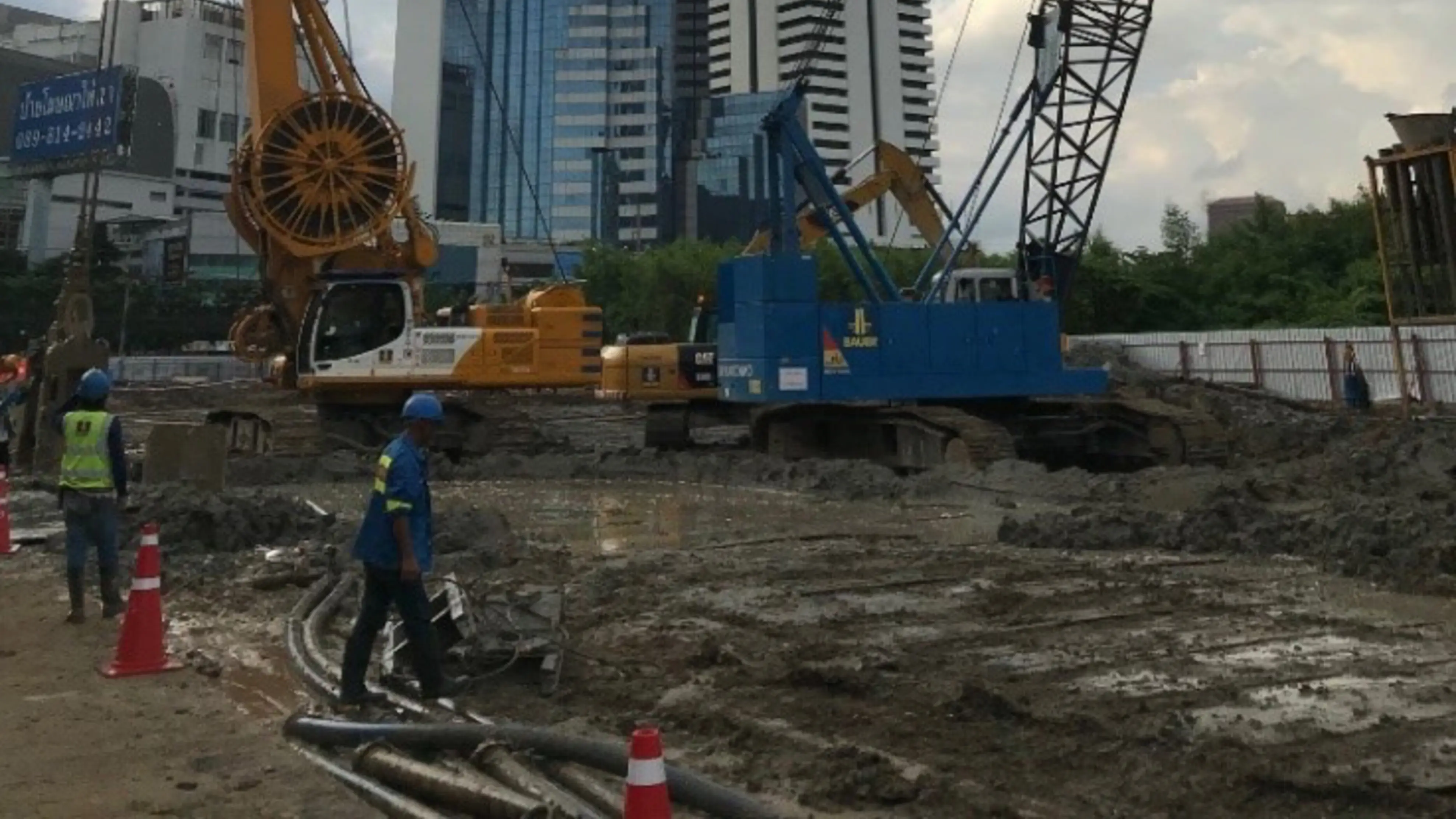 For the MRT Orange Line Project, Contract E1, Thai Bauer played a key role in the foundation work. The scope of work included the installation of 160 bored piles with a diameter of 800 mm, each reaching a depth of 40 m. Additionally, 201 bored piles with a diameter of 1,500 mm were installed at depths ranging from 60 to 63 m, along with 15 bored piles measuring 2,000 mm in diameter at similar depths. The project also required two barrette piles measuring 1,500 x 3,000 mm at a depth of 60 m. Furthermore, diaphragm walls were constructed, covering 11,700 m² with a thickness of 800 mm and 46,922 m² with a thickness of 1,000 mm at depths of 25 to 27 m. Our experts successfully completed this challenging work in just nine months.