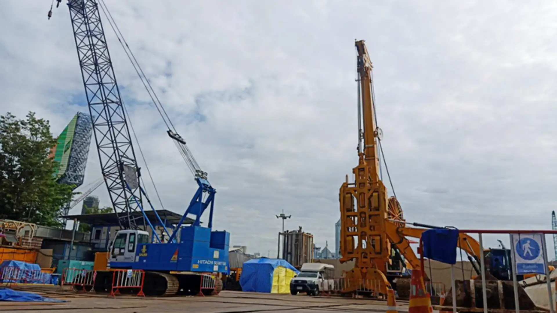 The One Bangkok MRT Connection Project, located in the Heart of Bangkok, required precise-foundation work. Thai Bauer was responsible for constructing 159.59 m² of diaphragm wall with a thickness of 1,000 mm and a depth of 22 m. Additionally, an equivalent area of guide wall was built to ensure structural integrity and alignment. The project was completed in three months, utilizing key equipment such as a 70-ton crawler crane and a D-Wall Rig Type GB46. This critical work laid the foundation for seamless connectivity between the One Bangkok development and the Metropolitan Rapid Transit, ensuring long term stability and efficient urban transit integration.
