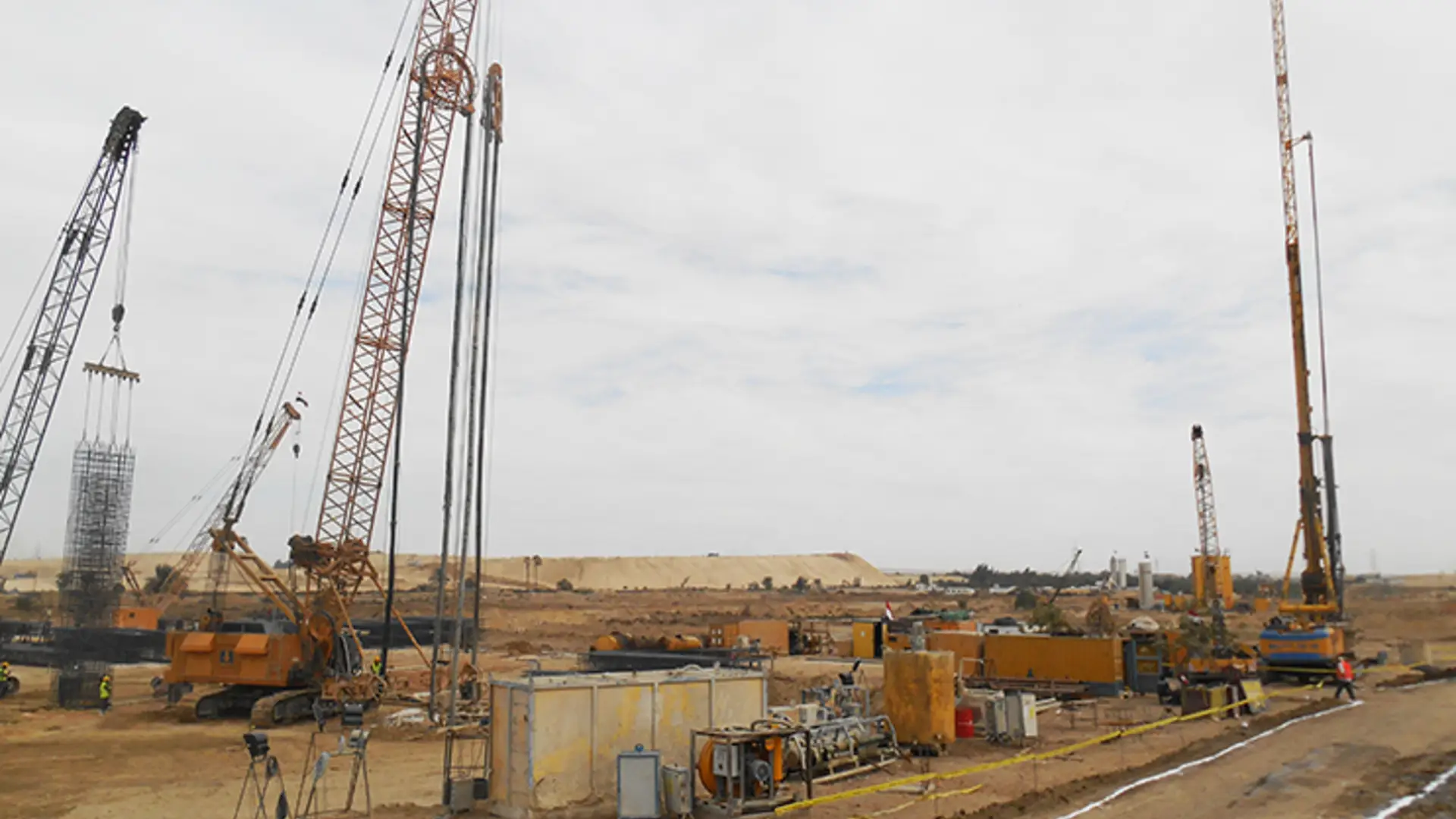 Bauer Egypt was tasked with constructing four circular shafts for TBM launch and retrieval, supporting the construction of four tunnels under the New Suez Canal. The diaphragm wall works included two shafts 18.3 m in diameter, reaching depths of 58 and 120 m. Additionally, our experts installed 10 m thick soft gel grout plugs and 240 micro piles, each 120 m deep with a 120-ton capacity, ensuring stability for this critical infrastructure project.