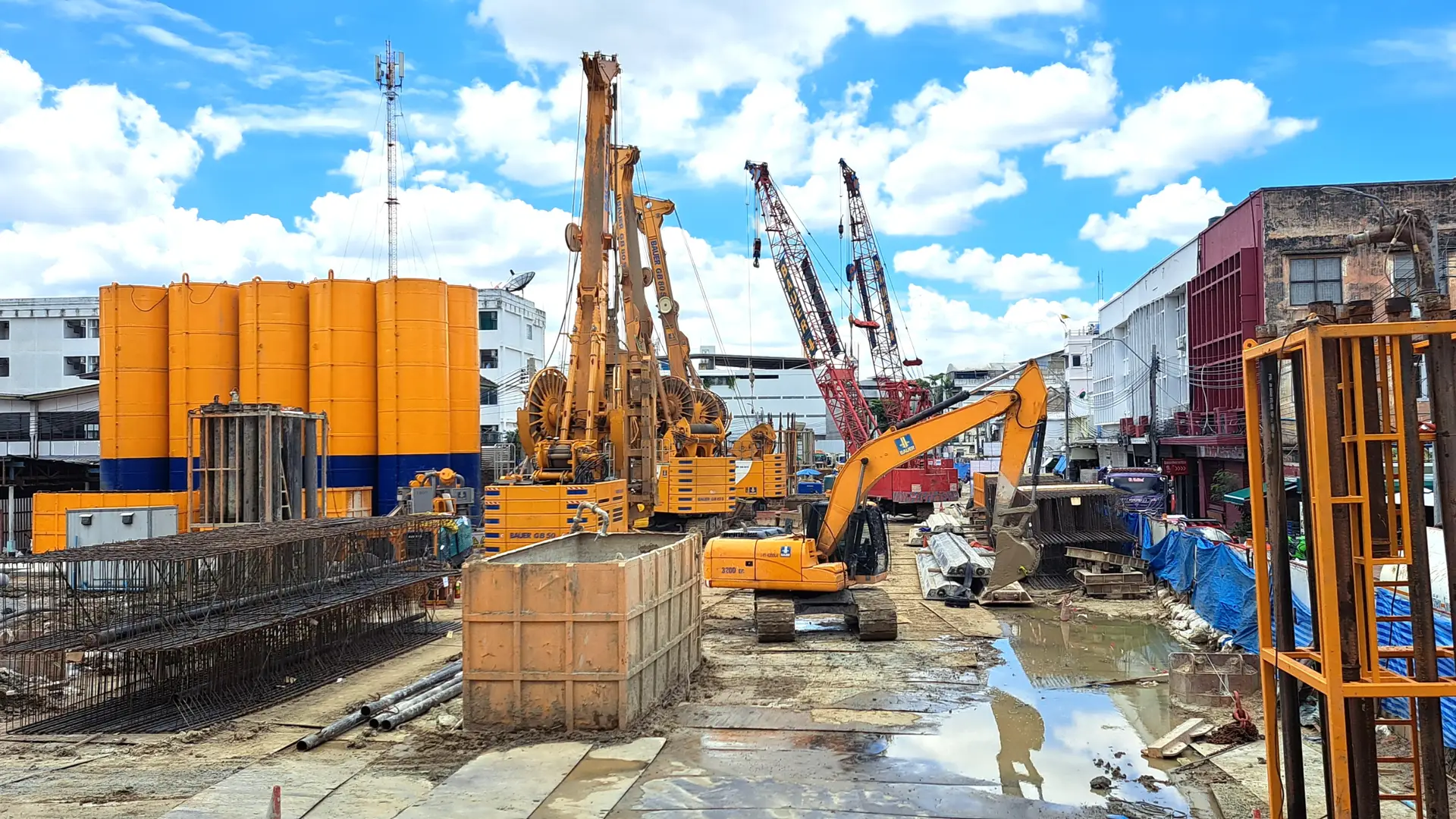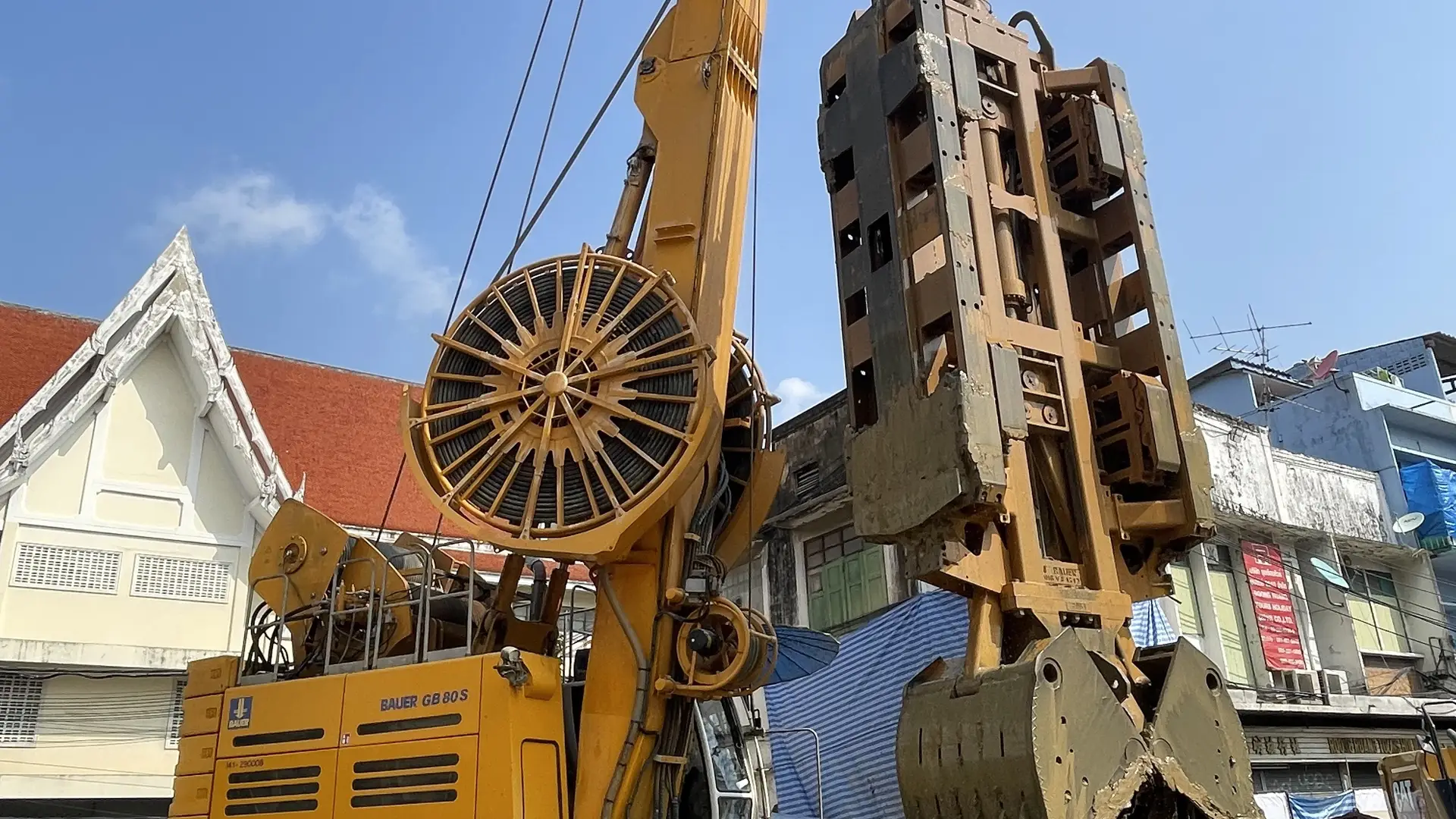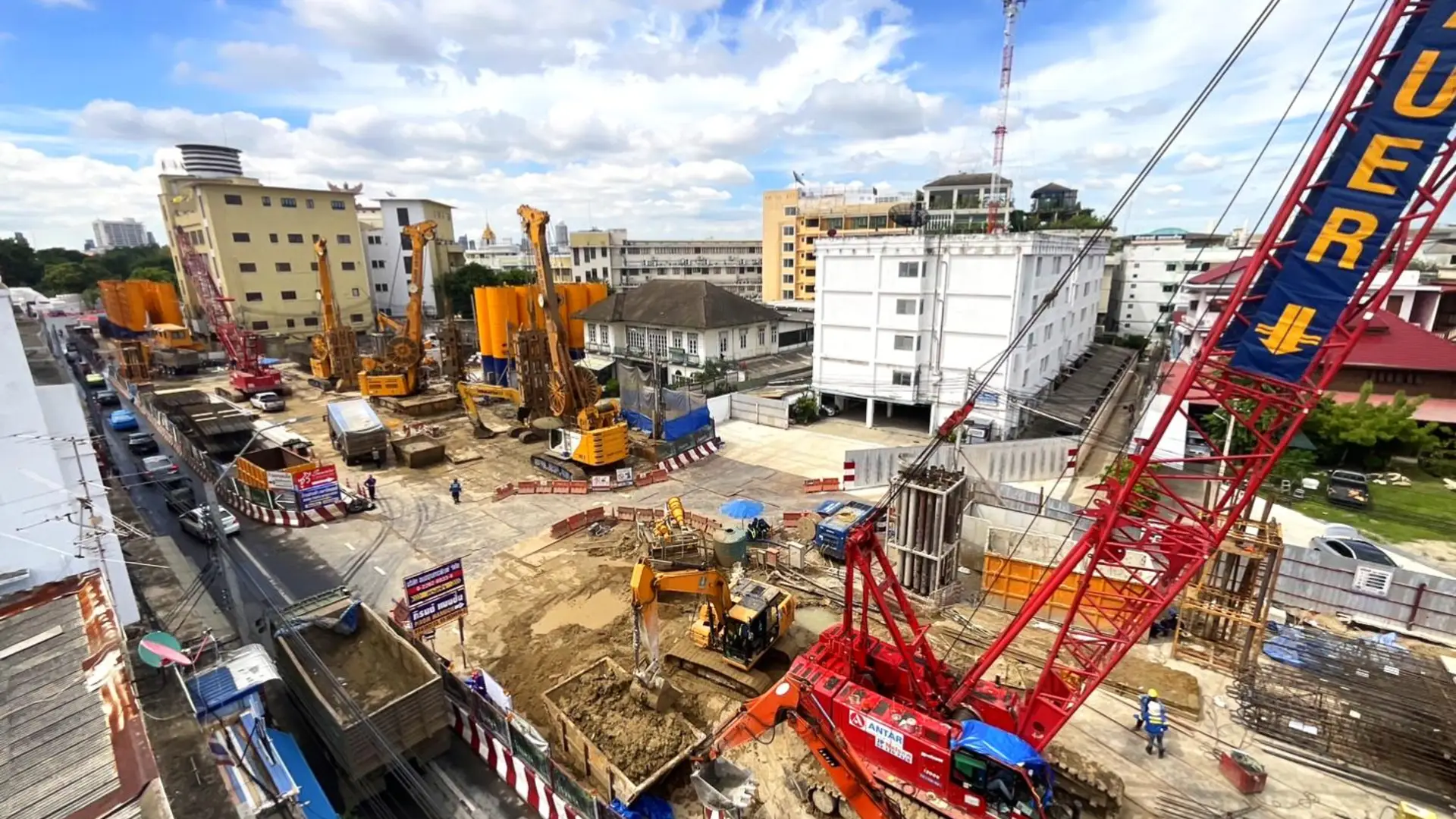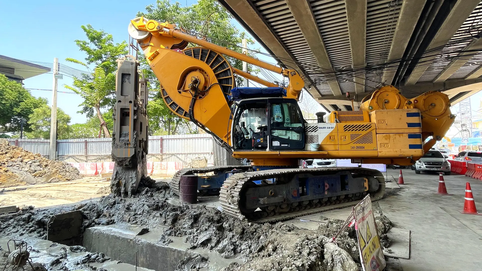 Thai BAUER played a key role in the foundation work for 3 underground stations and 1 intervention shaft for the MRT Purple Line (Southern section). The scope of work included the installation of 45 barrette piles sizing 1.200 x 3,000 m at depths of 47 to 72 m. Furthermore, diaphragm walls were constructed, covering 147,823 m2 with thicknesses ranging from 1,000 to 1,500 mm at depths 21 m to 75 m. Our expert team completed the work using advanced equipment including low headroom GB60 on the limited overhead clearance areas.