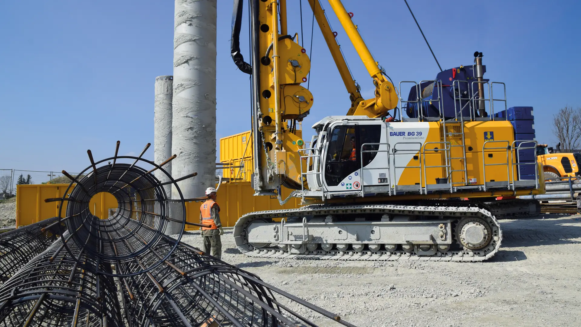 Constructing the 11.5 km west bypass in Rosenheim: For this project, Bauer Spezialtiefbau was tasked with foundation work for the new construction of a large bridge over a railway line. No easy task, since the execution of the mixed foundation was very elaborate: In total, roughly 11,500 m² of pressed sheet pile wall, 15,000 m of vertical drains and 253 large-diameter bored piles were constructed up to a depth of 50 m. The particular challenge: the unique construction soil on site. Starting from a depth of roughly 2 m to 5 m is a soil known as Rosenheim marine clay. This was an extremely sensitive soil stratum which offered a very low load-bearing capacity and high water content. A large project with many challenges.