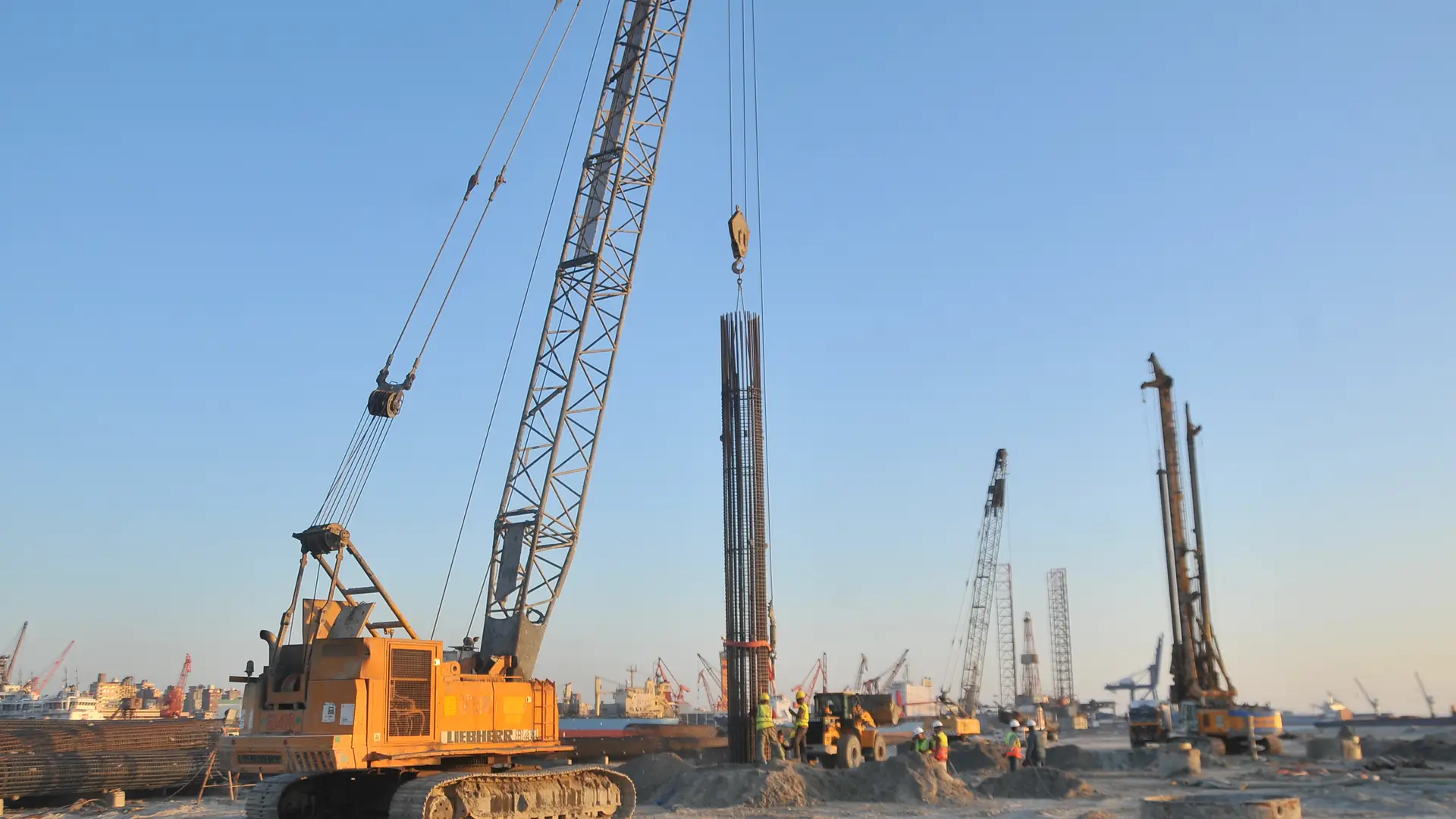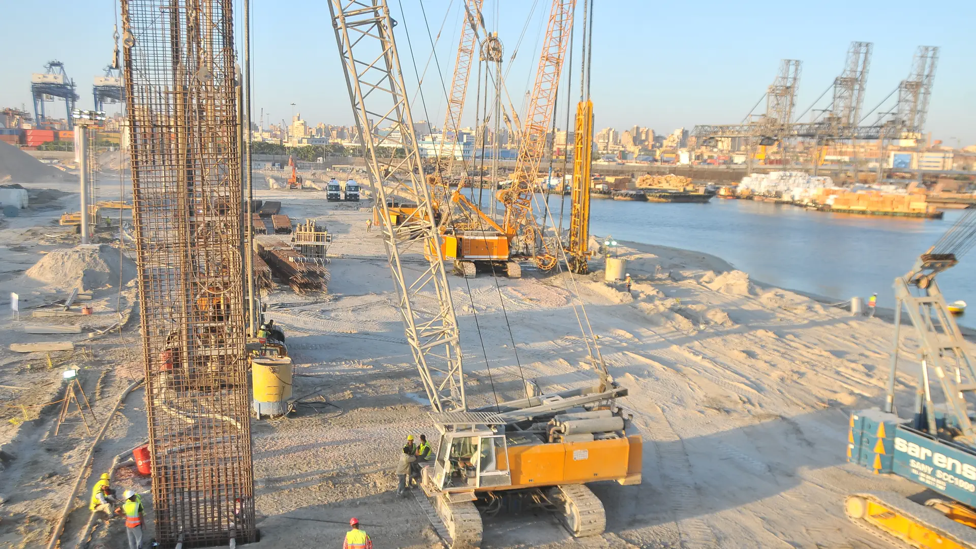 For the future: The port of Alexandria is one of the oldest harbors in the world as well as Egypt’s main port. Approximately 60% of Egypt’s exports and imports are handled here, which is why the port required an expansion. The new “Multi-Purpose Terminal 55/62” occupies an area of roughly 56 ha, which first has to be freed up and then made usable. The task for Bauer Spezialtiefbau? Foundation work for the semi-rectangular quay wall encompassing 225,897 m³: This comprises a front diaphragm wall, two rows of center piles and a rear row of barrette piles. The front diaphragm wall, 1,326 center piles in total and 660 rear barrette piles have a depth of up to 39 m.