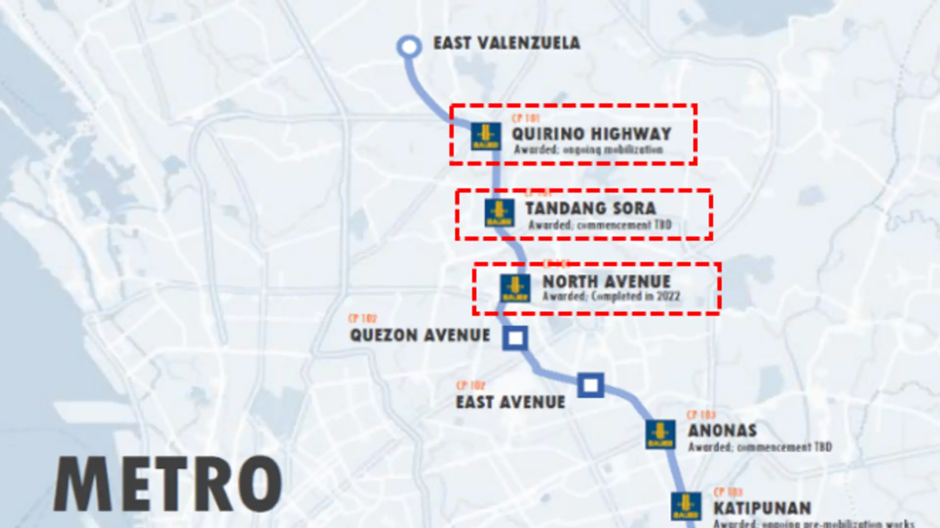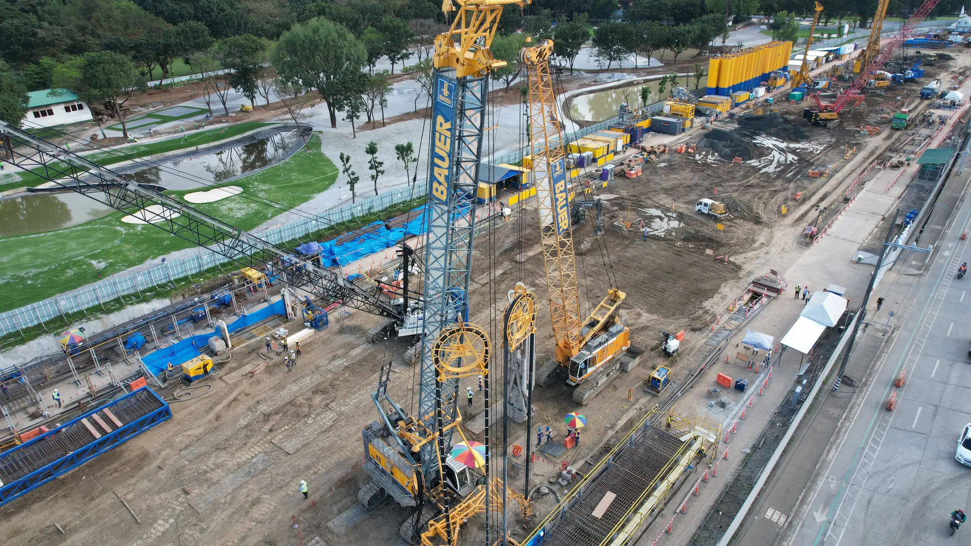 At North Avenue Station, BAUER constructed 385 King Post Columns or 11,091.00 lm of ø1200mm (max. depth: 30.50 m); including installation of H-beams), 120 Diaphragm Wall panels (1200mm thick, max depth 30.16m), and 48 Secant Pile Walls (Ø880mm, max depth 30.46m). At Quirino Highway Station, works included 151 King Posts (1.2m dia., 33m max depth), 114 Diaphragm Wall panels (1.2m wide, 34m max depth), 59 Sheet Piles (880mm dia., max depth 24m), and 312 Sheet Piles with 200m2 of MIP for Creek Diversion. For Tandang Sora, the scope includes installing 252 Steel H-Beams (with Guide Wall), 18,008m2 of Diaphragm Wall panels (1.2m thick), and 136 King Posts (Ø1200mm), and completed by early week of October 2025.