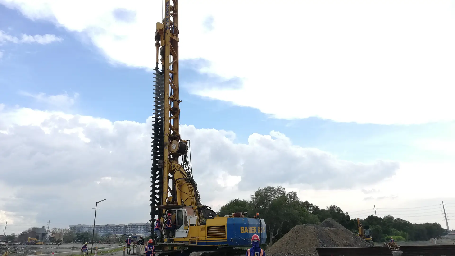 The Zapote New Satellite Depot is part of the expansion of the Country's Light Railway Transit (LRT) Line-1. The 11.7 km LRT-1 extension from Baclaran to Cavite will lessen the traffic congestion on the roads and will benefit the commuters coming from South Area to work in Metro Manila by lessening their travel time. The Zapote New Satellite depot will consist of a light maintenance building with two tracks and nine stabling tracks for 18 trains. The subsoil condition of the project area consists of varying levels of significant thickness of very soft to very stiff silt, clay, and very loose to very dense sand. The challenge is to reach the average target strength of 2.6 MPa in this difficult soil condition. Hence, for the ground improvement required in this project, Bauer Philippines was awarded with the design and construction of the retaining wall via Mixed-in-Place (MIPTM ) Wall. The MIPTM Wall will reduce the settlement criteria to an acceptable level and will increase the shear strength of the soil before the future retaining wall, to guarantee the sufficient bearing capacity. Our experts successfully installed a total of 33,683 lm of MIPTM columns in an interlocking grid using 550 mm diameter double-auger mixing tool, drilled down to a depth of 14 m with cement slurry being added.