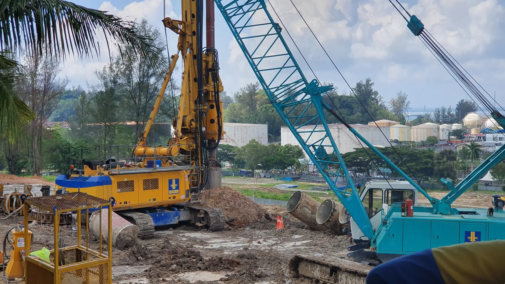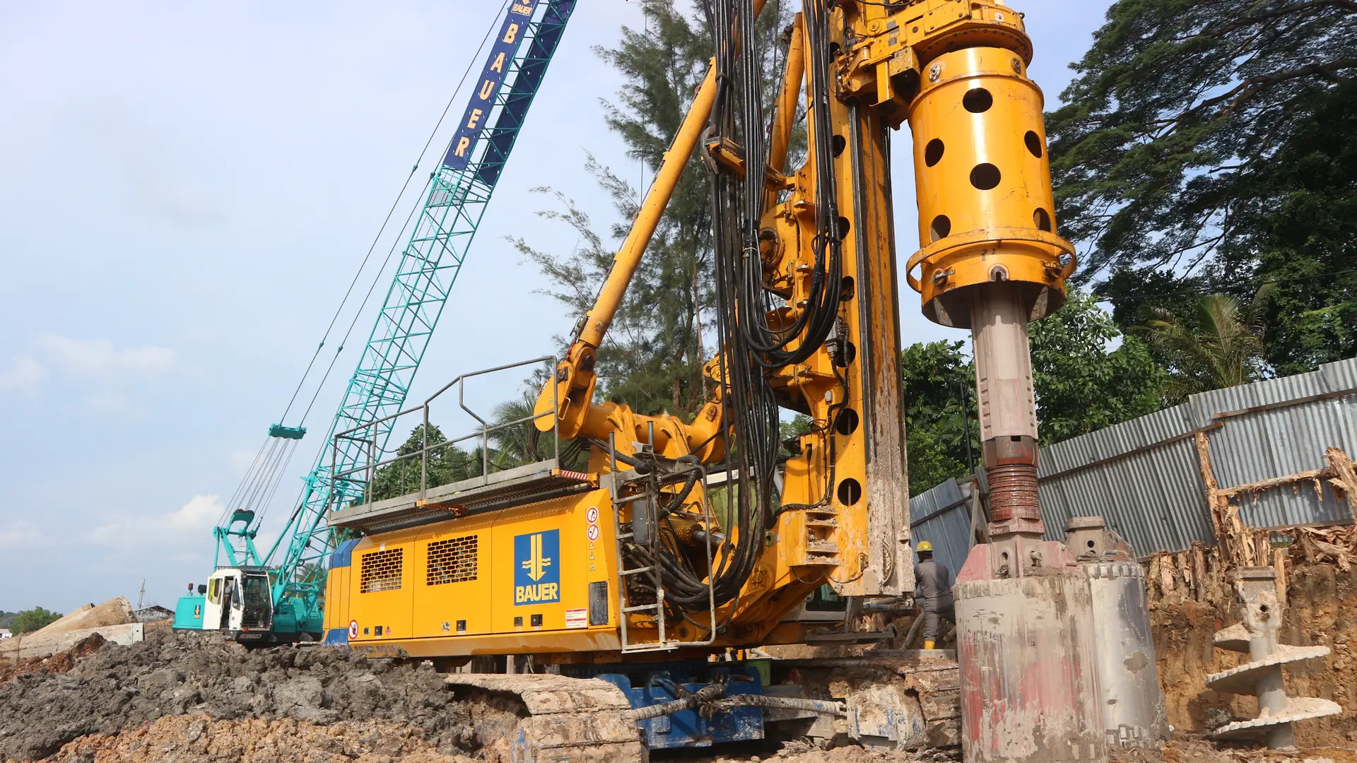 A soldier pile wall was designed to protect the unstable slope from landslide possibility that may occur again on the Jalan Yos Sudarso. The road is access to the Pertamina refinery (RDMP) in Balikpapan. The concept of the design is to make a structure to protect the slip circle area using soldier pile diameter 1180 mm as a final option from the design consultant. The Soldier pile depth is 24m from the actual ground level, and the slip circle is located 12 m below. The double-wall casing was utilized for the first 15 m below the ground to protect the shaft from sliding possibility in the slip-circle area. Further drilling was done uncased, and the shaft was stabilized using polymer slurry. BAUER used 1 unit BG 28, and works were carried out on a 24-hour basis with two shifts.