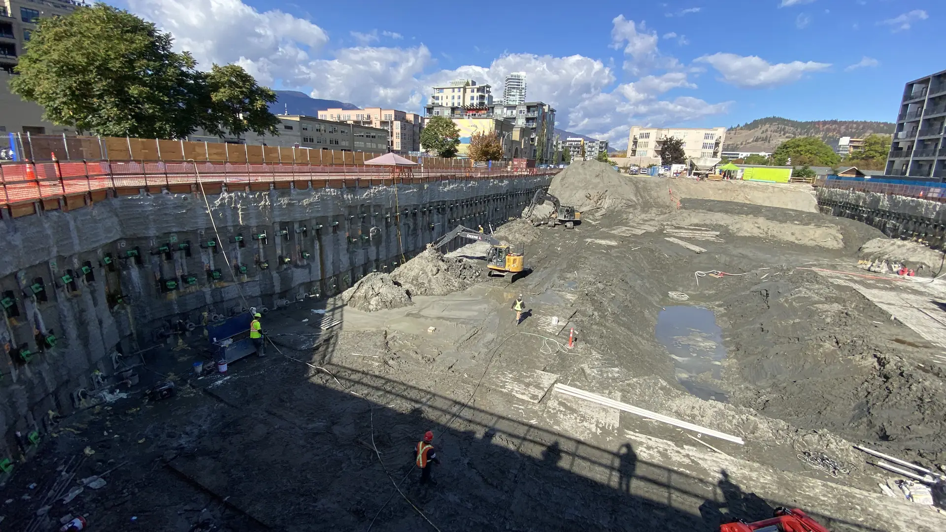 Bauer Foundations Canada were awarded the construction of a temporary Cutter-Soil-Mixing (CSM) shoring and Cut-off-wall to support the excavation for underground parking at the new UBC Kelowna campus. The new downtown state of the art education facility and student housing will stretch 43 stories high. A total of 110 cutter soil panels were installed to a depth of 30 m to retain the surrounding soil and prevent water from entering the construction site. Ground conditions on the site were challenging with loose lake deposits and a high-water table. Timber piles from a previous building created challenges during installation and were removed to prior to continuing installation of the CSM wall. Commitment to quality: Experts to overcome obstacles.